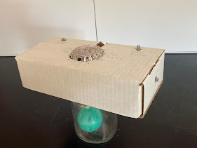 For my project, I have created an instrument I call the Lidstrument, due to the fact that the controls are placed on top of a jar like a lid. The instrument is made up of a cardboard box, glass jar, a micro servo with wire and a toy ball attached, 3 potentiometers, and the circuit playground express.