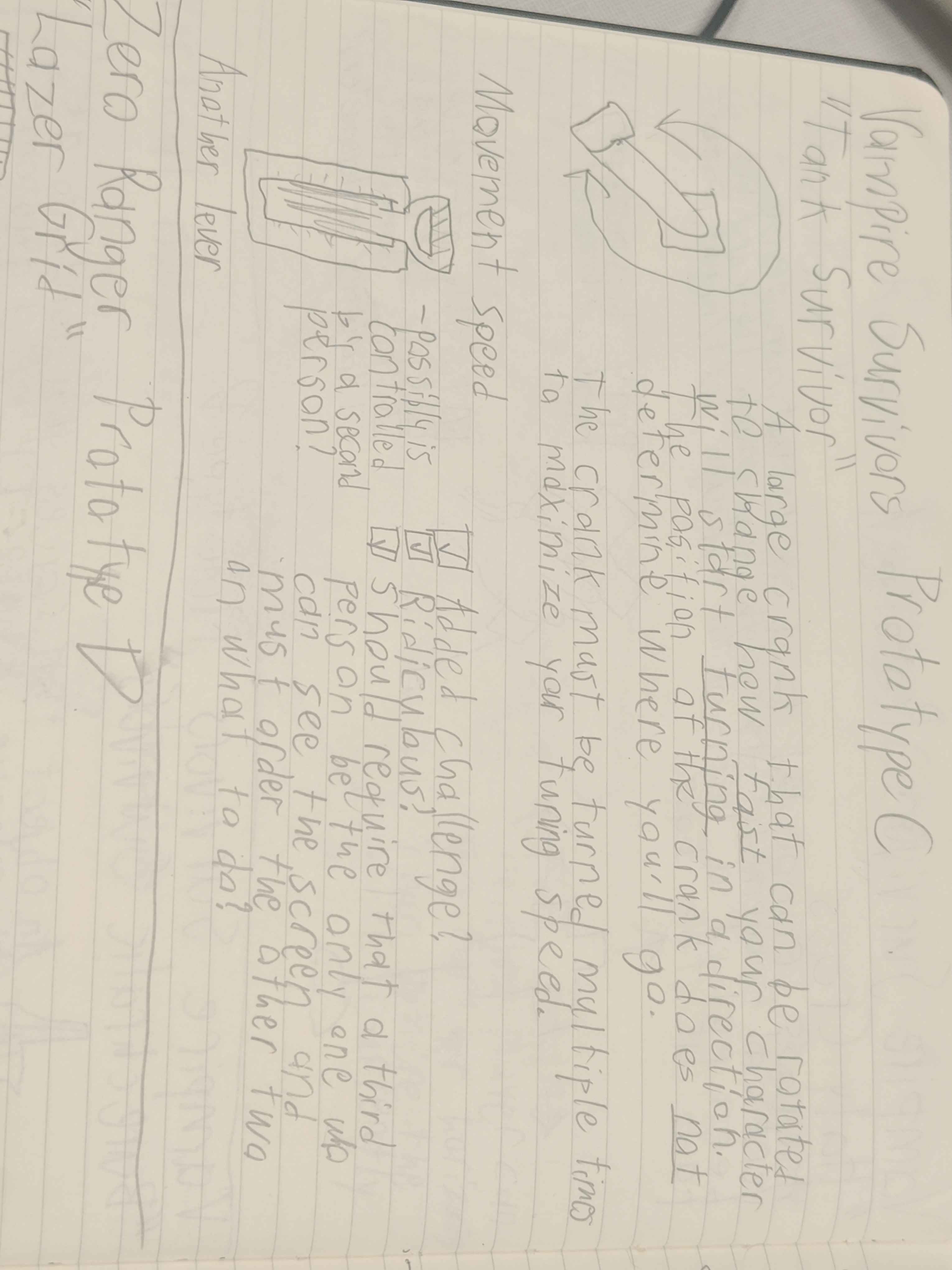 The first is the wheel (built on a rotary encoder), which has a holy cross shape and a garlic knob. This allows you to change how much you'll turn in a particular direction while moving. The cross exists to fit the general vibe of the game but the garlic is a weapon in game that gives you an aura that damages enemies near you, encouraging you to charge at them.