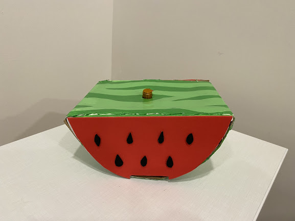 For our project, we created a custom game controller for the game Suika Jelly using the Circuit Playground Express and a potentiometer. To play Suika Jelly, the player must strategically drop different fruits into a jar. Going into this project, we wanted to design a physical interface that helped the player feel more connected to the movement and placement of fruit. We decided to go with a watermelon slice because it is intuitive to hold and its half-circle shape can be manipulated almost like a steering wheel.